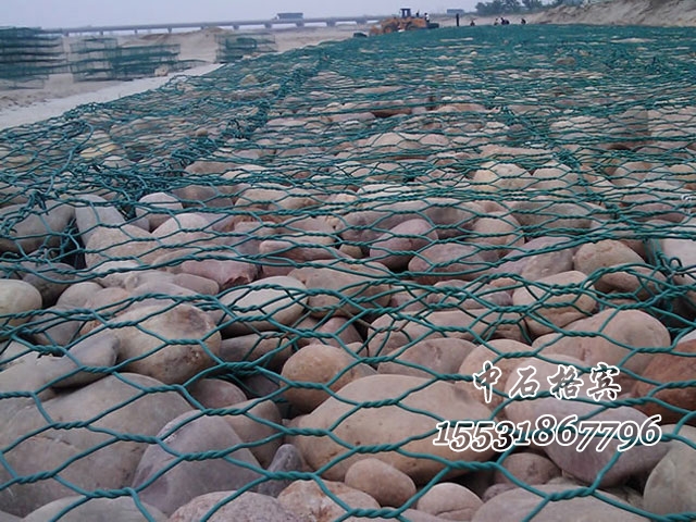 護(hù)腳固濱石籠中裝入塊石,塊石較大而平的一面擺在籠子周?chē)构虨I石籠四周平直。避免出現(xiàn)凸凹現(xiàn)象。中間用顆料較小的石塊填塞緊密,固濱石籠四周石料不能小于網(wǎng)孔尺寸。固濱石籠較上一層石塊擺放時(shí),應(yīng)大面朝上。保證固濱石籠的平整,較后封閉格賓石籠。固濱石籠之間用綁扎線進(jìn)行連接,形成一個(gè)更穩(wěn)固的整體。